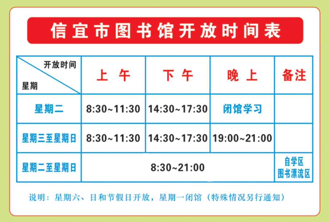 说明:星期六、日和节假日开发,星期一闭馆(如有特殊情况会另行通知)