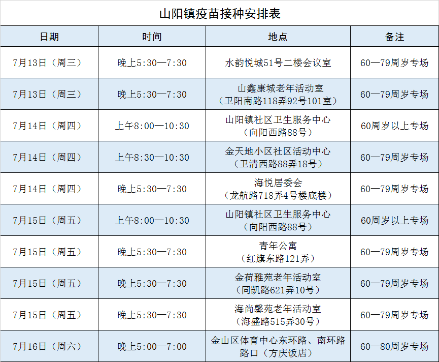 山阳镇老年人新冠疫苗接种安排 山阳镇老年人新冠疫苗接种安排电话