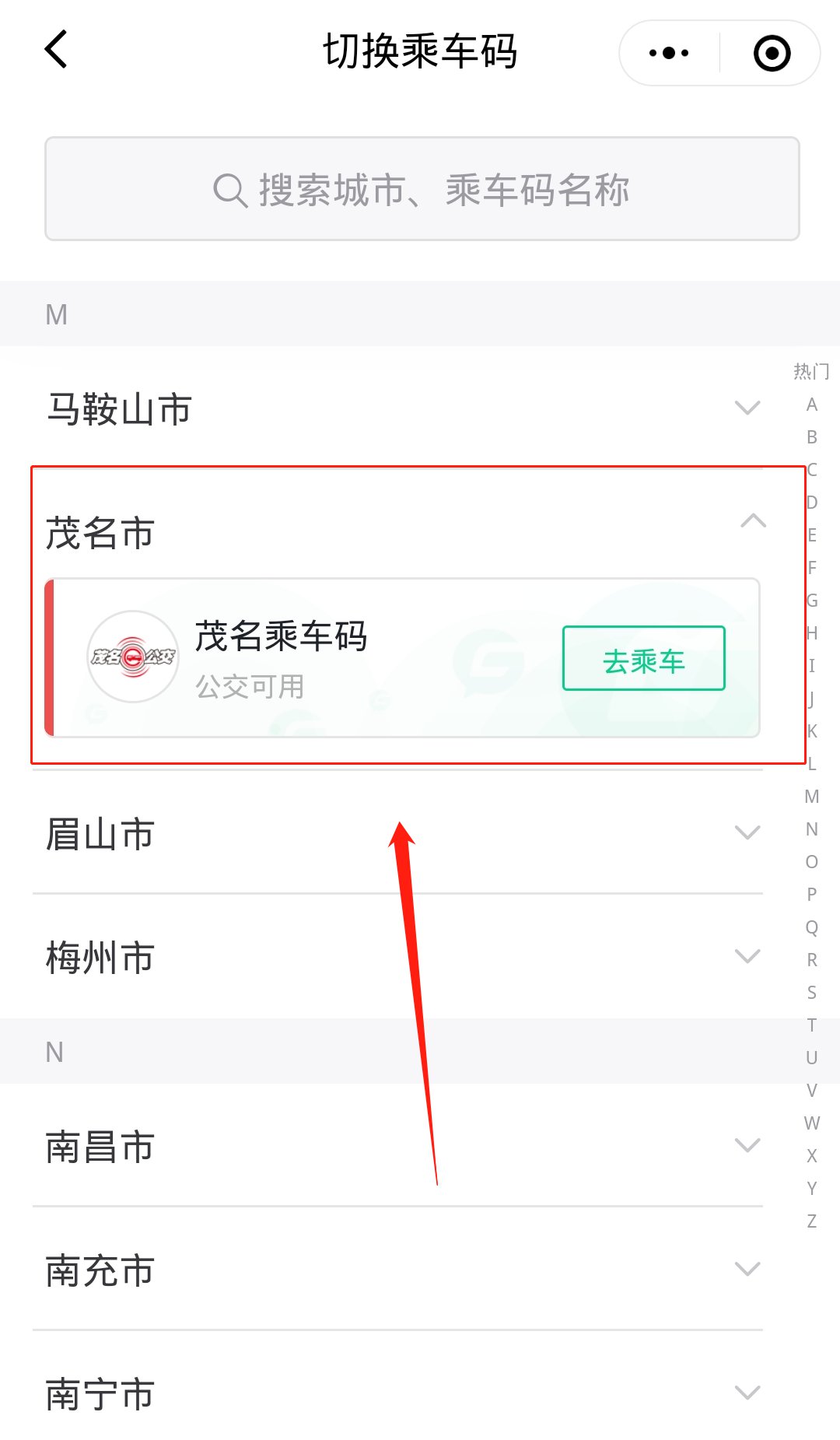 第二步:看到【茂名乘车码】后点击“去开通”。