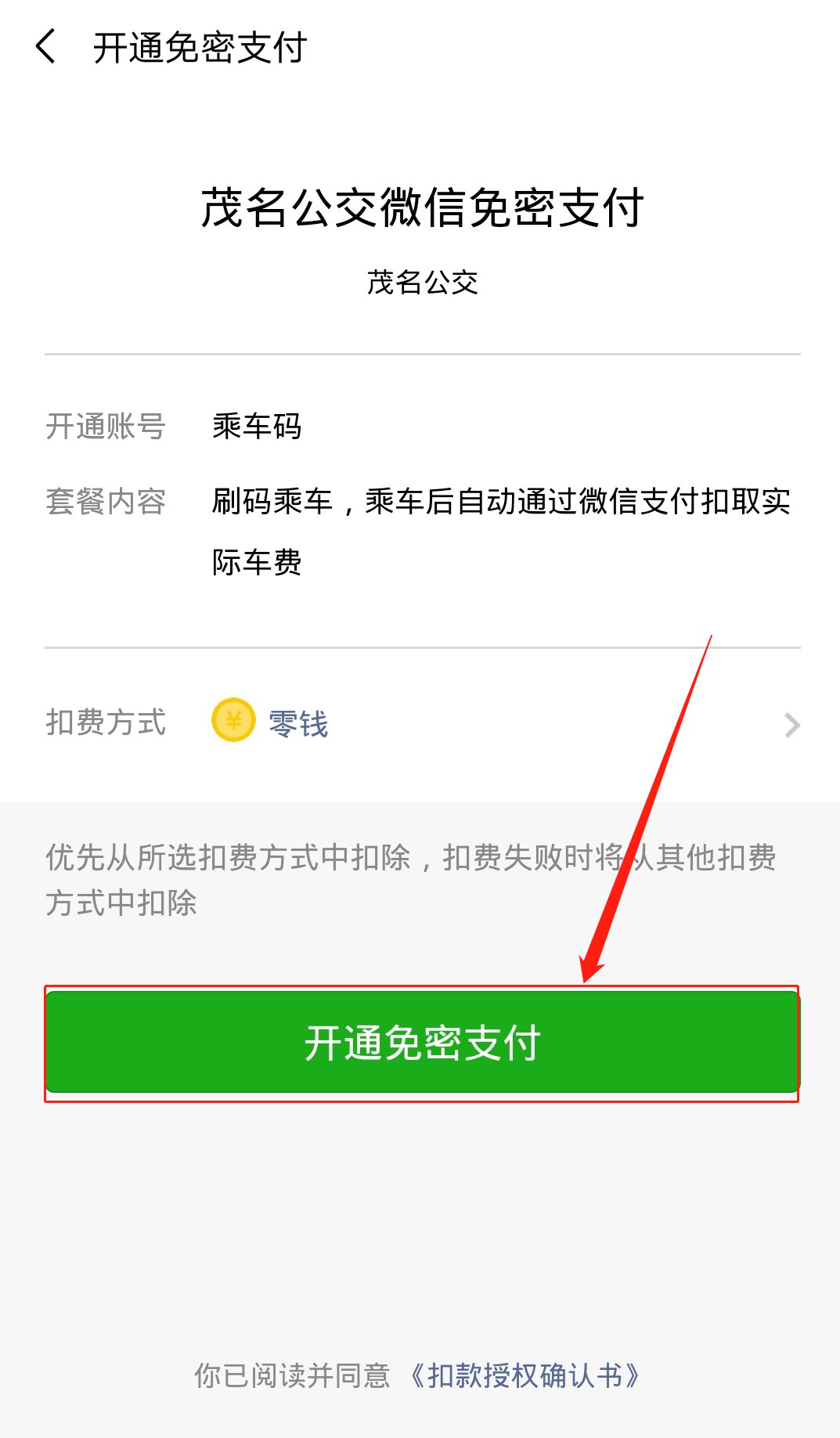 第四步:开通免密支付,开通该项业务就不用每次乘车都输入密码了。