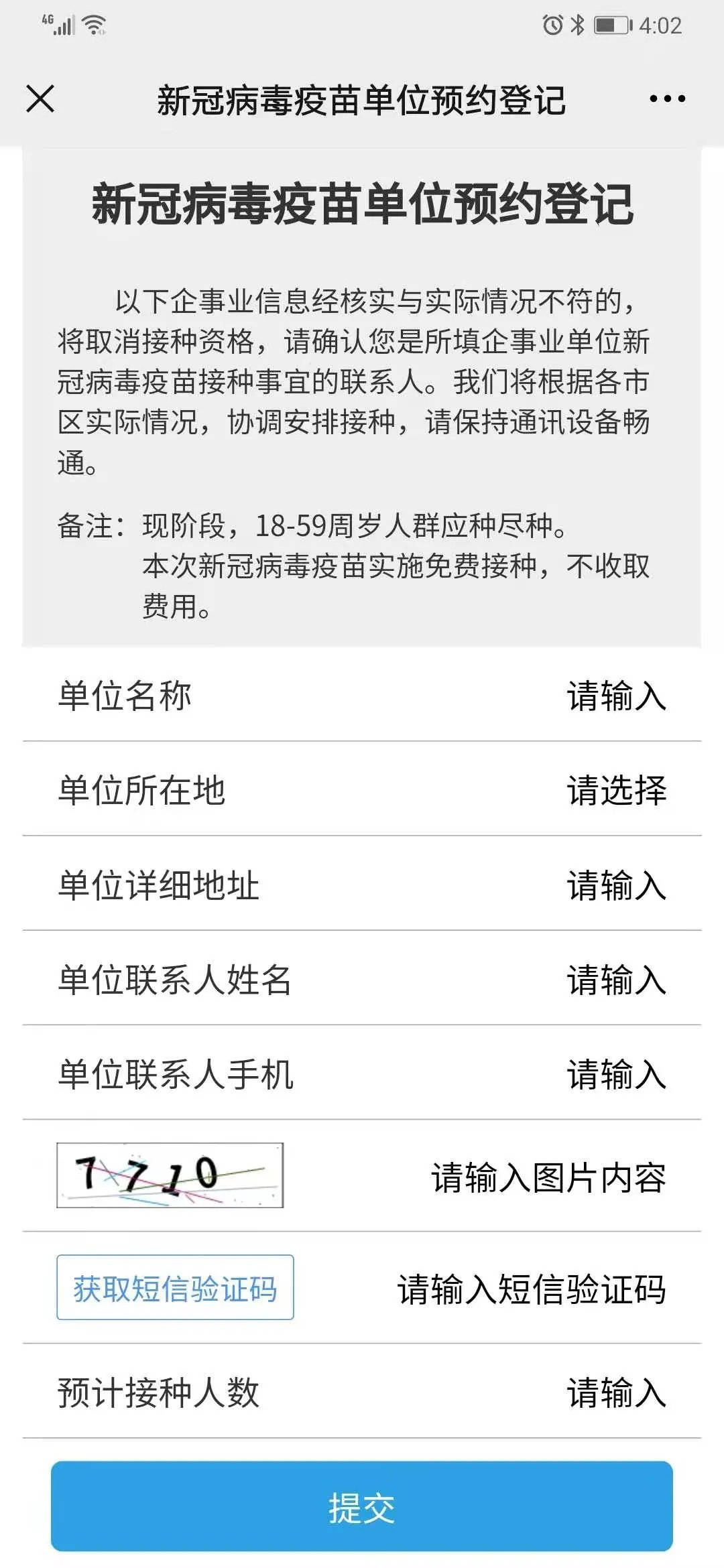 注:预约登记完成后,请保持登记时填报的企事业单位联系人通讯设备畅通。预约登记信息一定要如实填写!