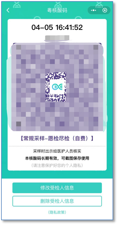第二步:出示 “电子健康码”或“粤核酸码”,供医护人员扫码登记;