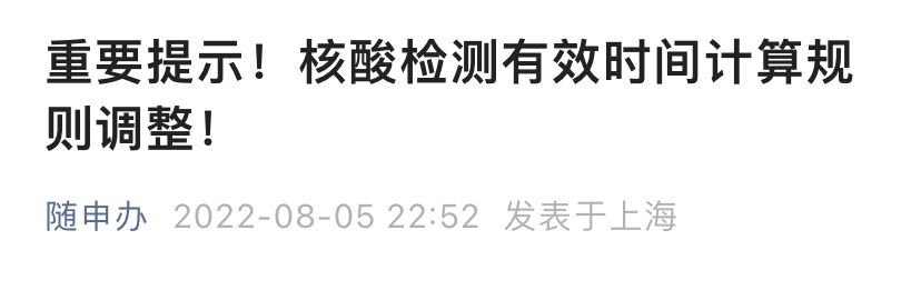 8月5日起上海核酸检测有效时间计算规则调整