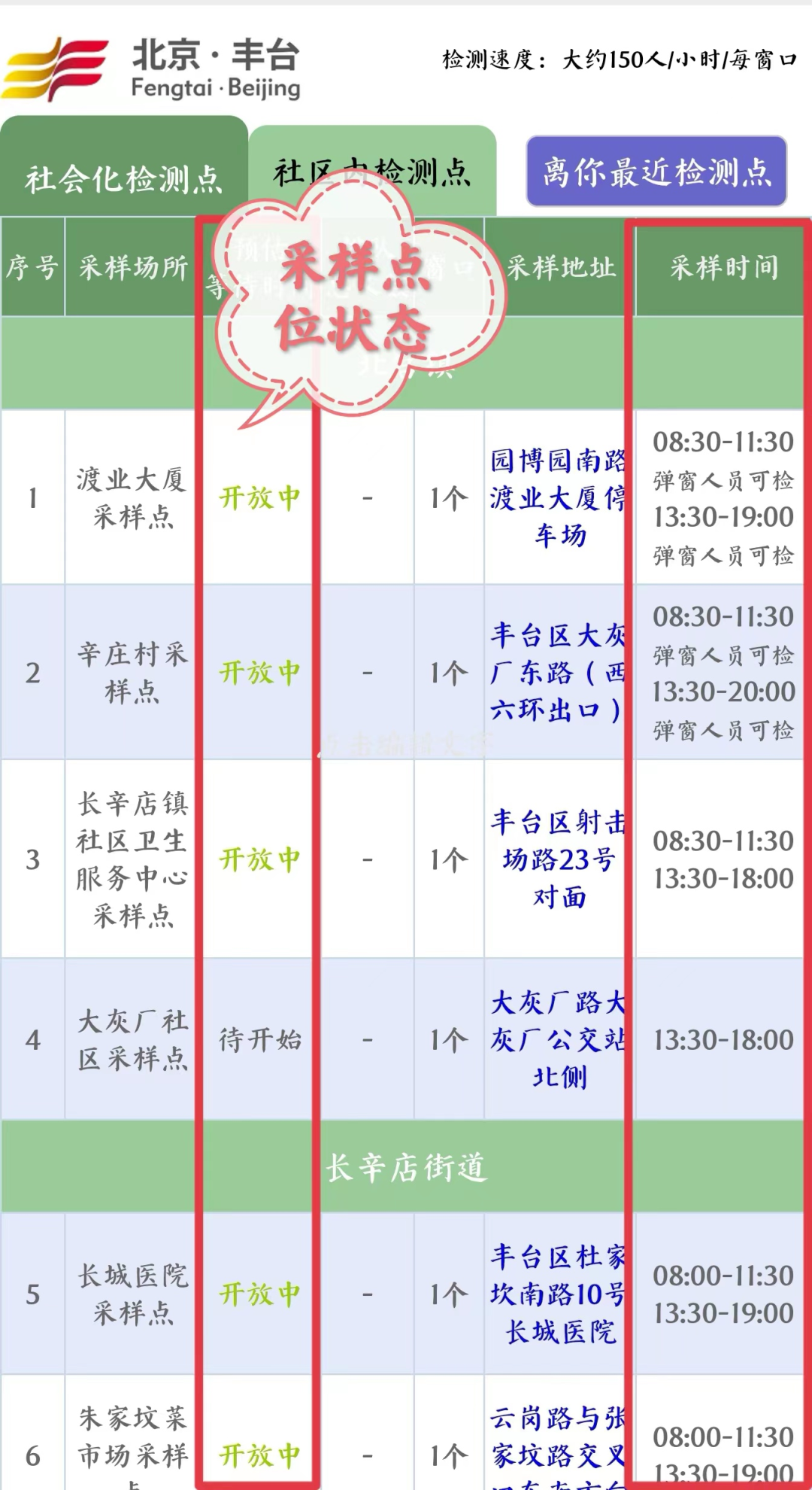 为方便市民群众及时获取附近采样点位情况,合理安排核酸采样行程,丰台区常态化核酸检测采样点位信息查询小程序上线啦!