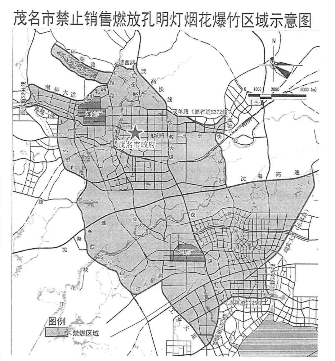 二、在茂名石化公司滨海北山岭油库、港口一区油库、金塘供气站等三大库区围墙外1公里范围内禁止燃放销售烟花爆竹,5 公里范围内禁止燃放孔明灯。