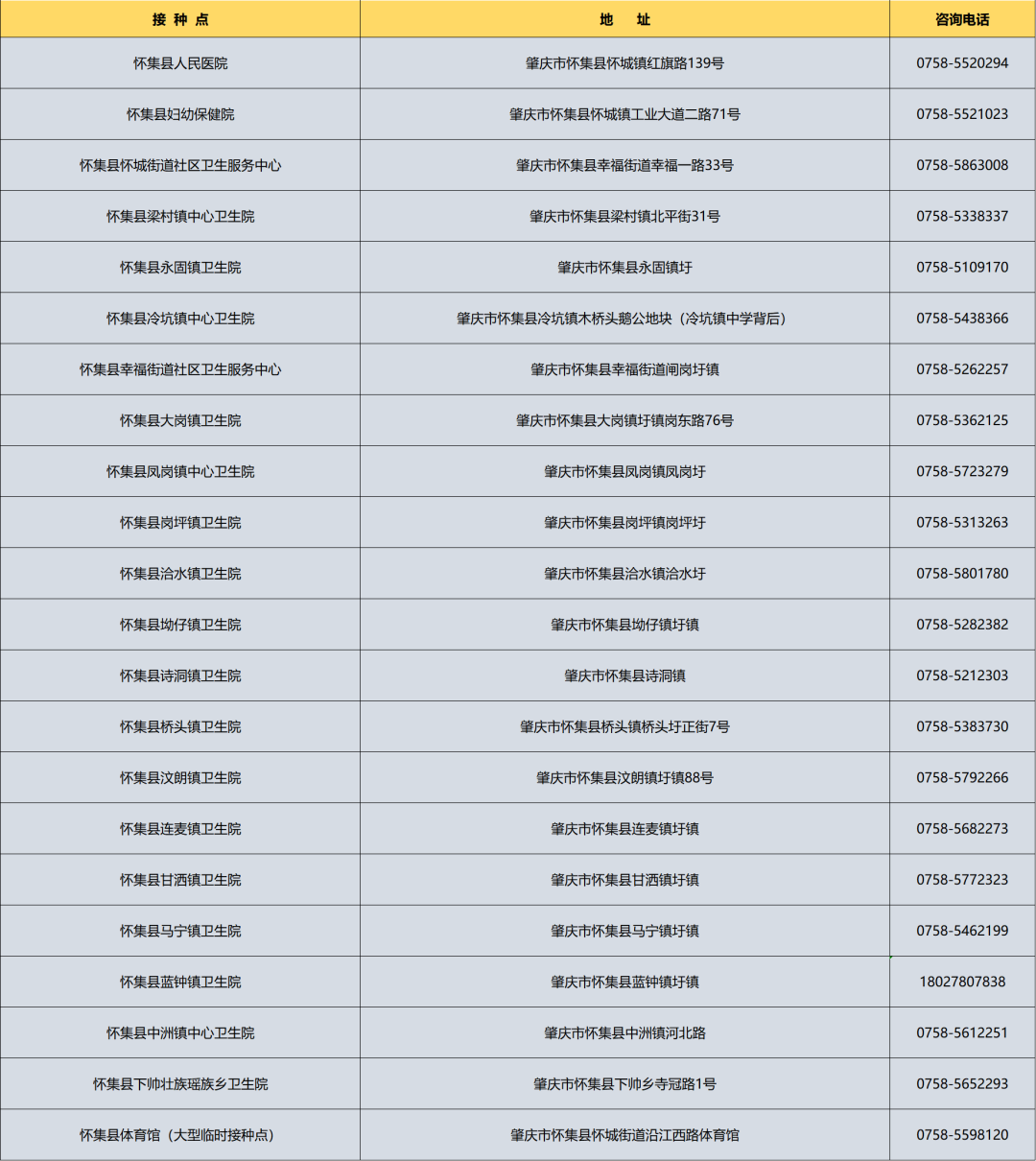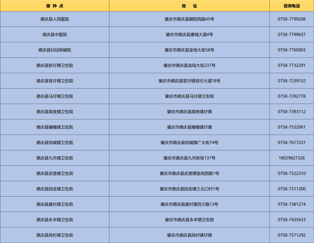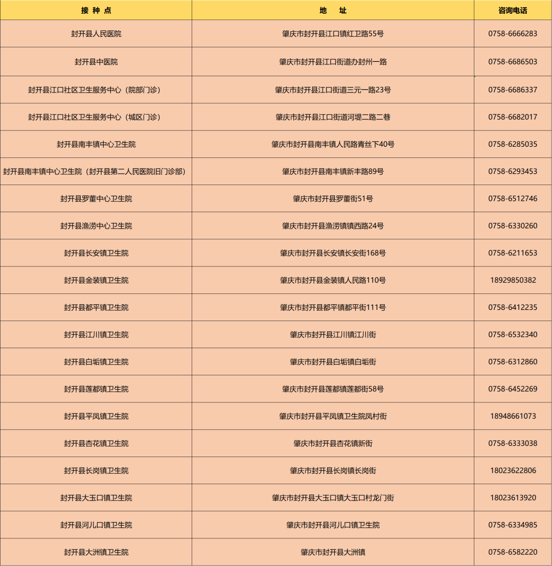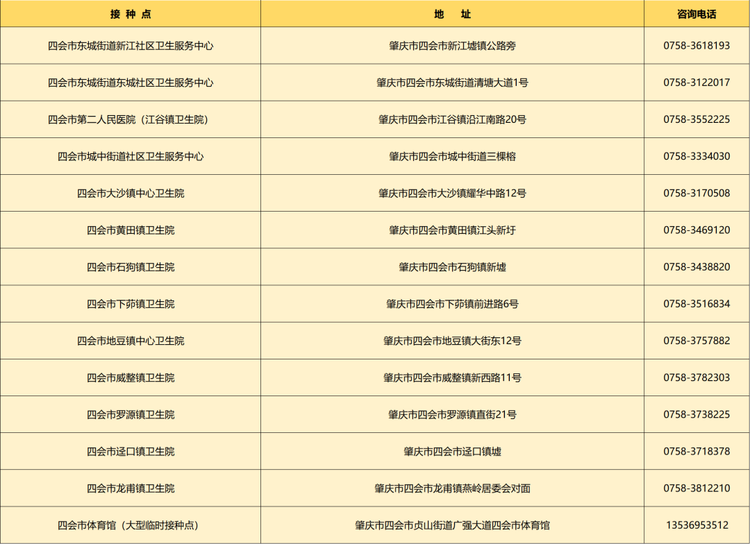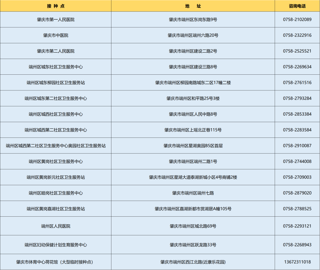 肇庆市新冠病毒疫苗接种点一览(持续更新)