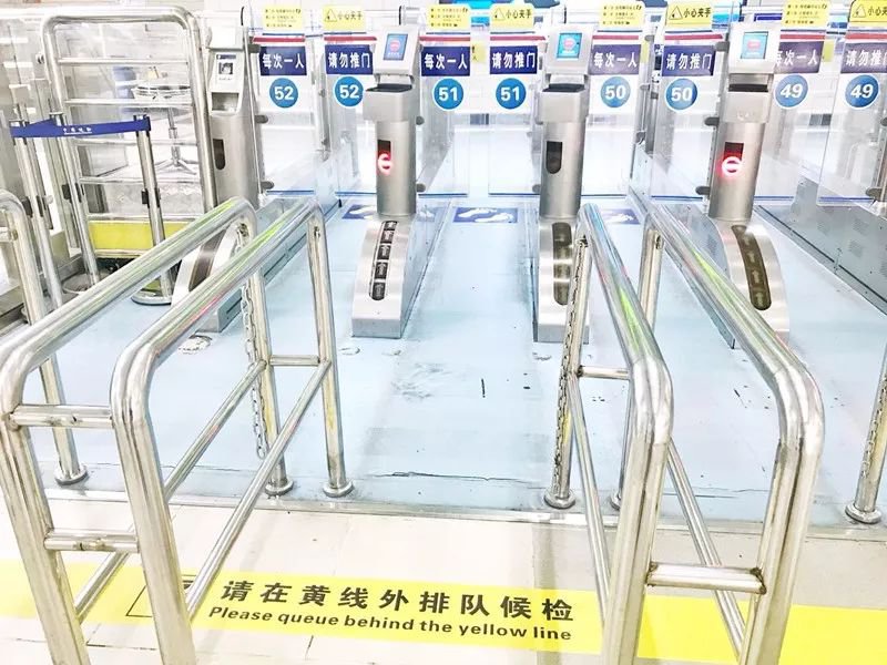 第一步:在黄线外排队,等待前面的人进入通道,且门关闭后,可以上前读证件。