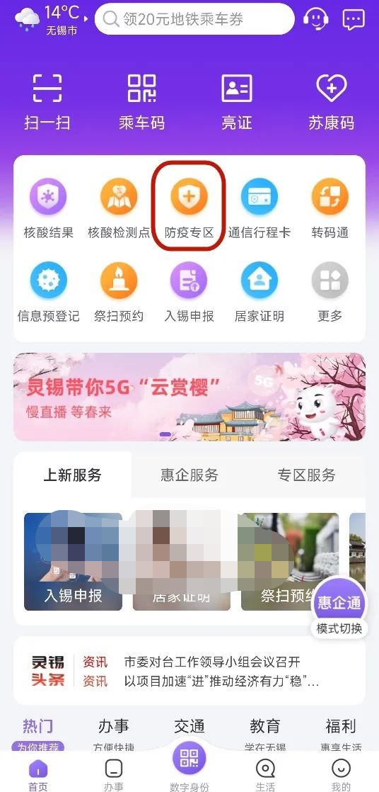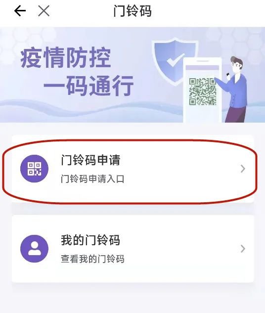 1、进入“灵锡”APP,首页点击“防疫专区”→“门铃码”→“门铃码申请”进入申请页面。