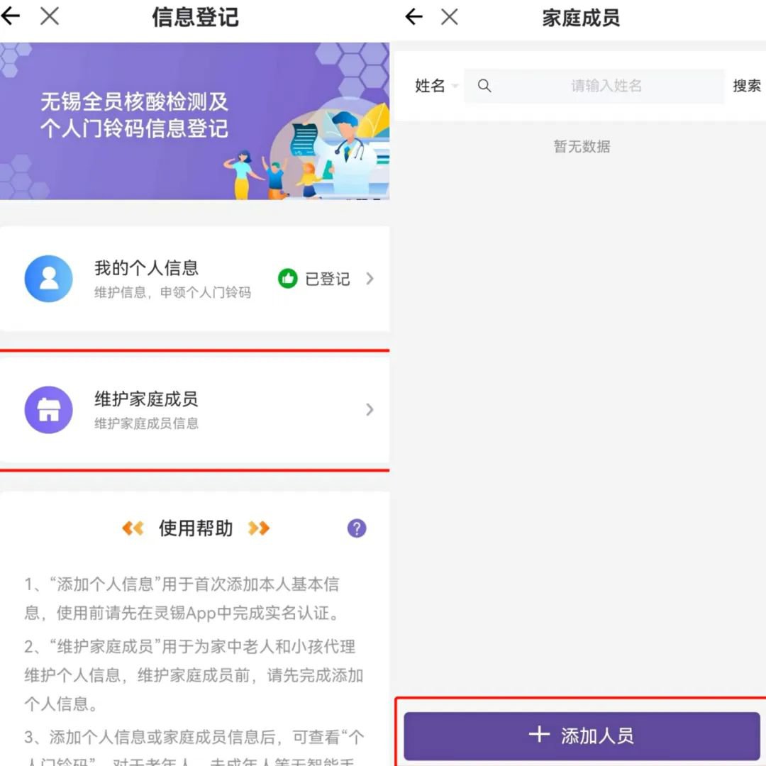 第二步:选择【维护家庭成员】中完成信息维护,上传本人照片并保存打印“个人门铃码”(也可以直接打印后粘贴本人照片)。
