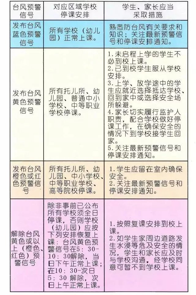 6.相关应急处置部门和抢险单位加强值班,实时关注灾情,落实应对措施。珠海市教育局通知:全市托儿所、幼儿园、普通中小学校、中等职业学校(含技工学校)停课。未启程上学的学生不必到校上课,已到校学生服从学校安排,上学、放学途中的学生应就近选择抵达学校、回到家中或选择安全场所躲避。