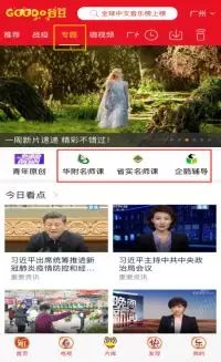 第二步:进入“粤课堂”专区后,根据实际情况,选择对应课程,即可收看,如下图。(只有移动宽带用户才能观看)