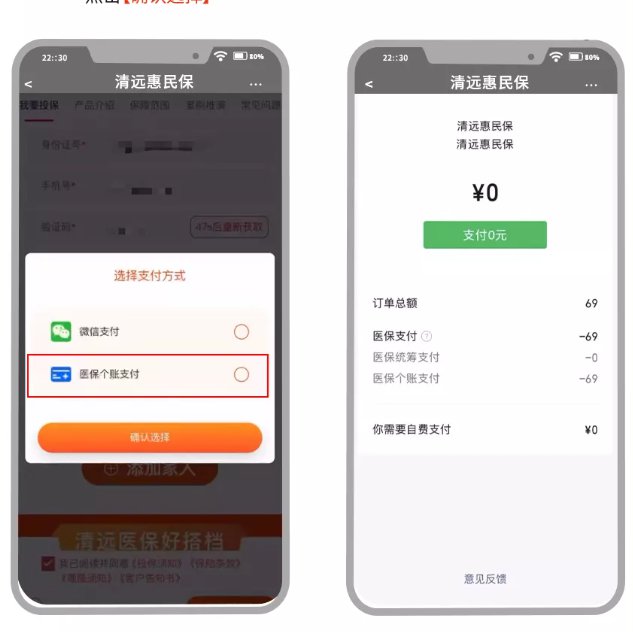 特别说明:医保个账支付仅支持投保人证件类型是“身份证”,请您确保购买本产品时提供的对应证件的证件号与清远医保参保时对应证件的证件号一致,以免影响医保个账扣缴。