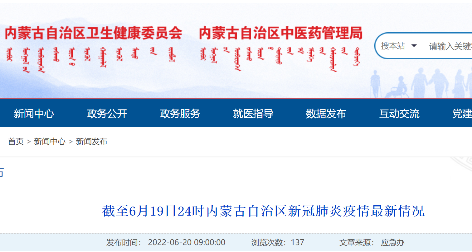 截至6月19日24时内蒙古自治区新冠肺炎疫情最新情况
