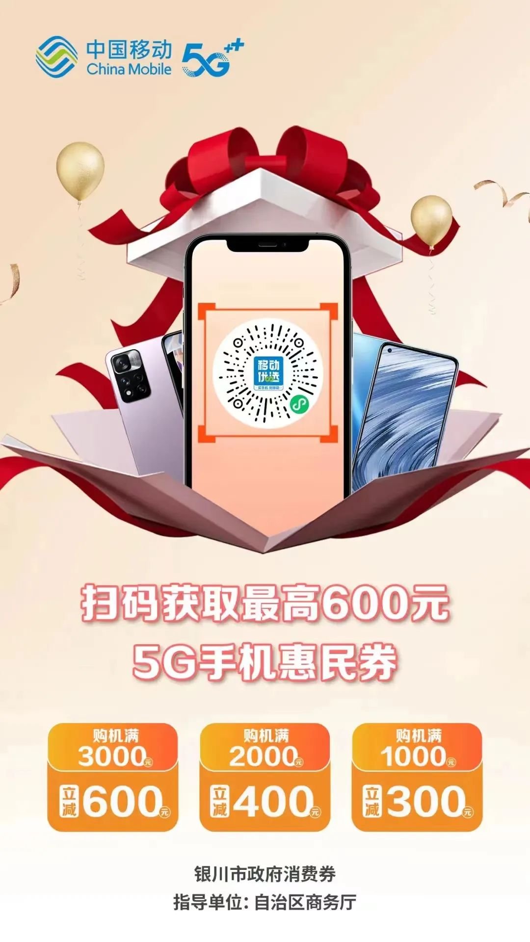 活动规则:购5G手机满3000元减600元,满2000元减400元,满1000元减300元,存话费最高可得1070元惠民消费券。