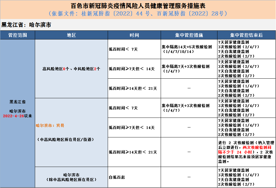 1、确定为中高风险地区或自公布本土疫情之日往前14天的返百来百人员,须提前 24 小时向目的地社区(村、屯)报备,在抵百后 12 小时内向目的地社区(村、屯)报告,纳入社区管理,接受健康管理服务。