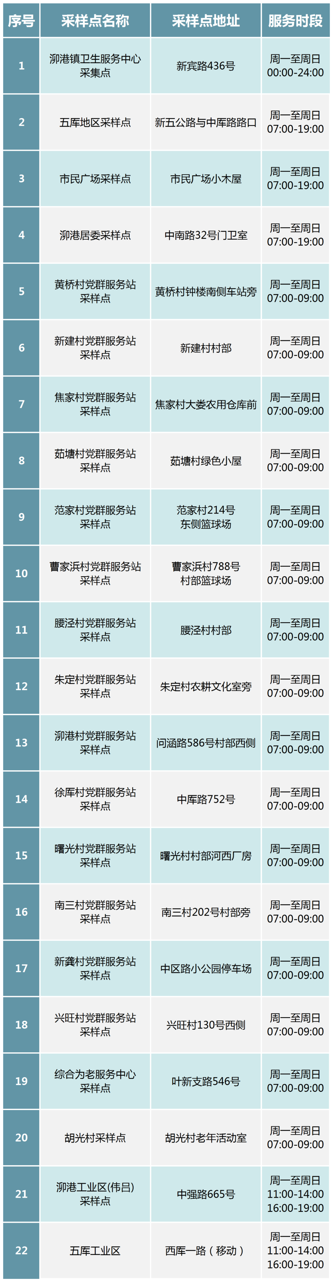 泖港镇常态化核酸采样点名单