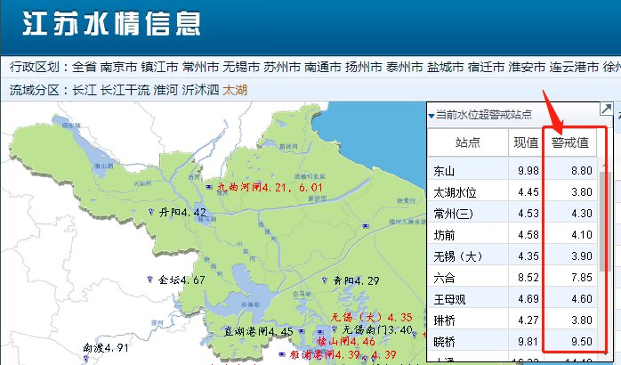 太湖平均4.45m,涨0.01m,超警0.65m。