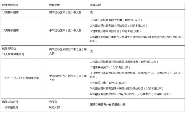 10月20日,广东省疾病预防控制中心官网更新对重点地区来(返)粤人员健康管理措施。截至10月20日,具体措施及对应人群情况:点击此处(放大查看)