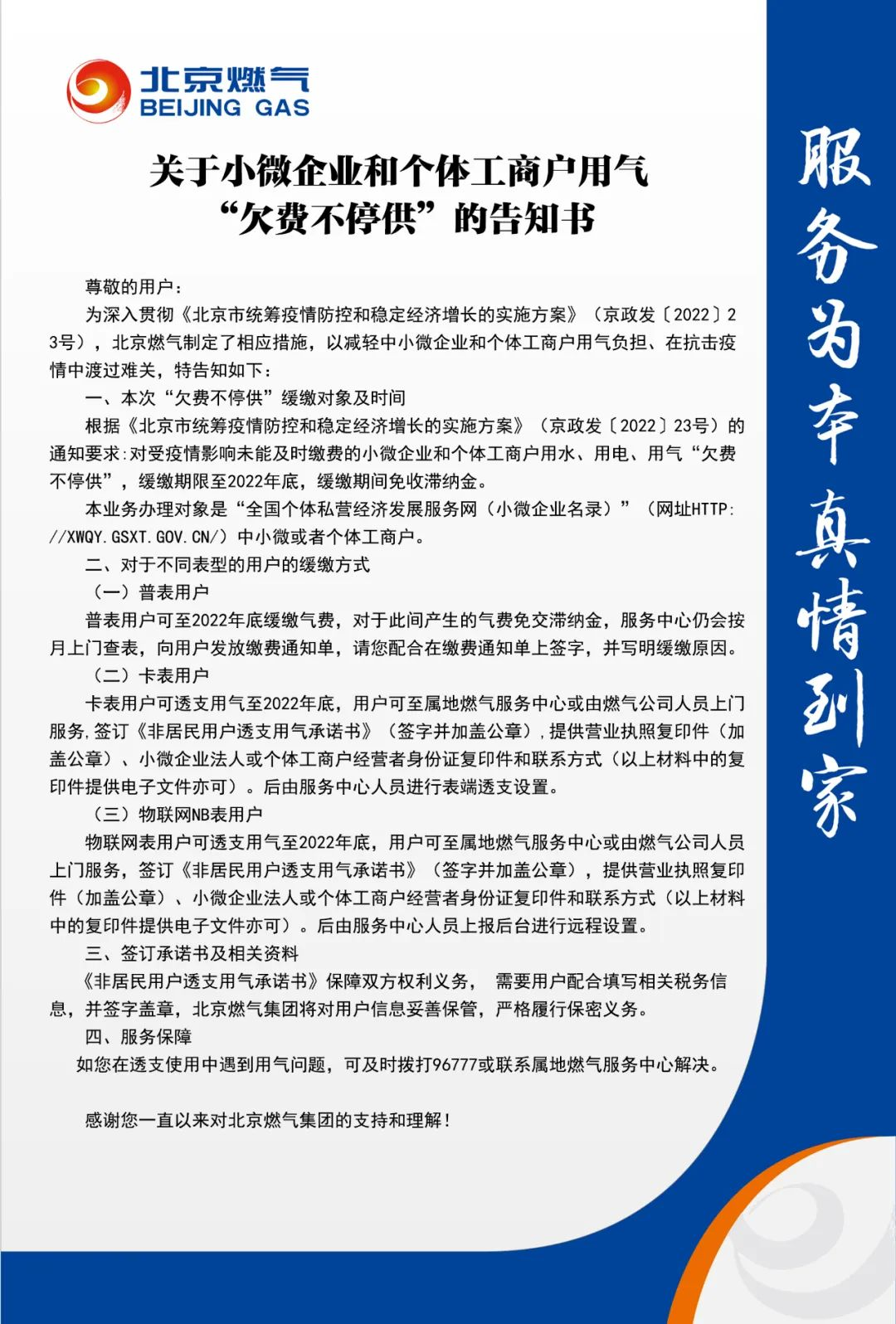 北京燃气集团提示,“欠费不停供”业务中涉及到的《非居民用户透支用气承诺书》,可保障双方权利义务,因此需要用户配合填写相关税务信息,并签字盖章。北京燃气集团将对用户信息妥善保管,严格履行保密义务。若用户在透支使用中遇到用气问题,可及时拨打96777或联系属地燃气服务中心解决。
