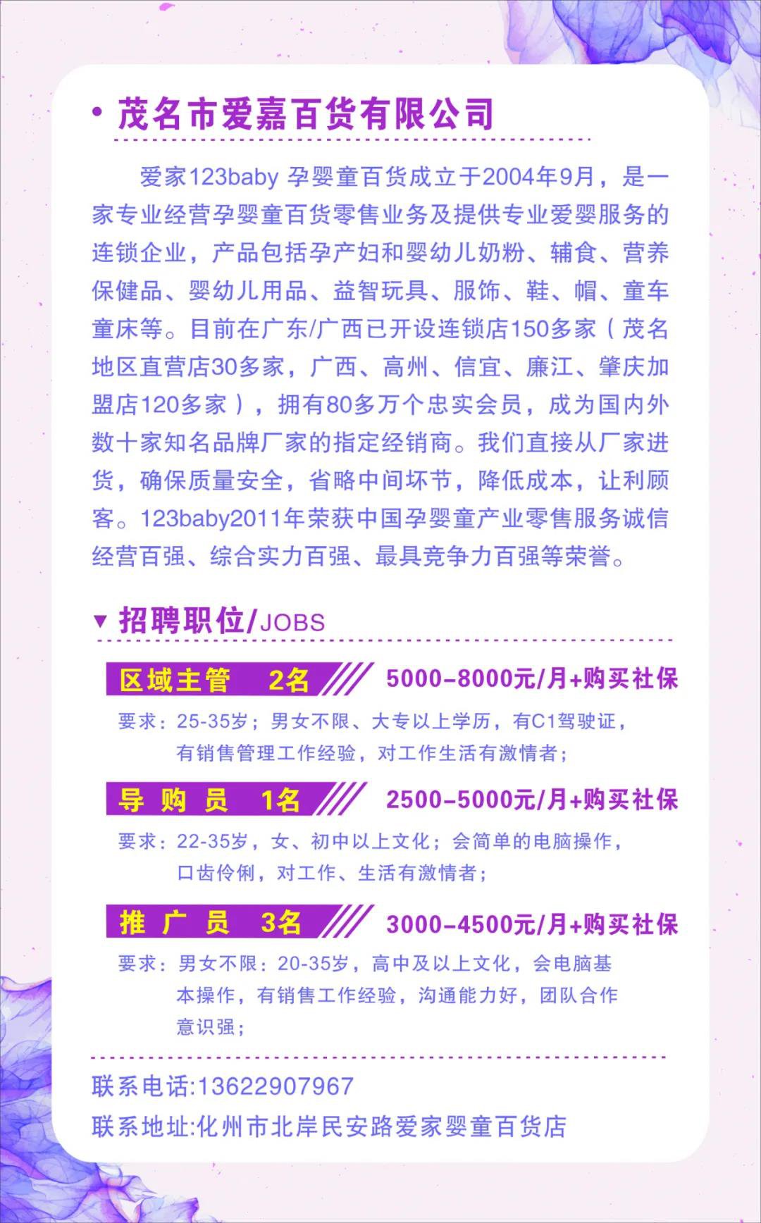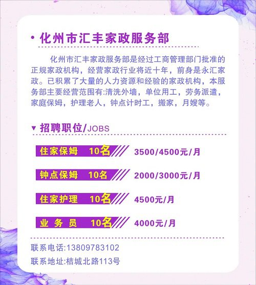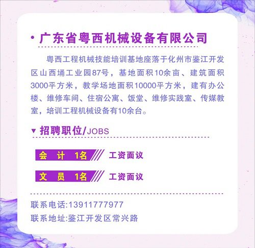 联系电话:0668-7331896(人社局职介中心)