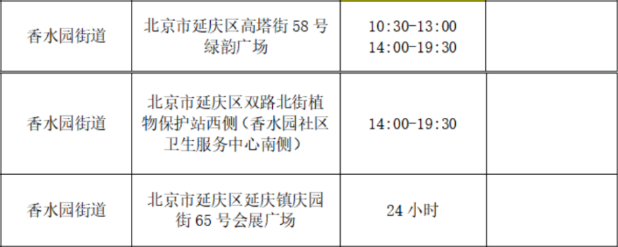 ➤北京延庆香水园街道常态化核酸检测点【因各采样点会有动态调整变化,具体实际情况为准】