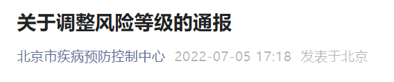 2022年7月5日起北京风险等级调整通报 2021北京风险地区