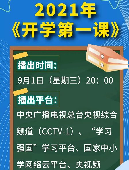 节目将于9月1日(星期三)20:00准时在中央广播电视总台央视综合频道(CCTV-1)播出,并在“学习强国”学习平台、国家中小学网络云平台、央视频同步播出。