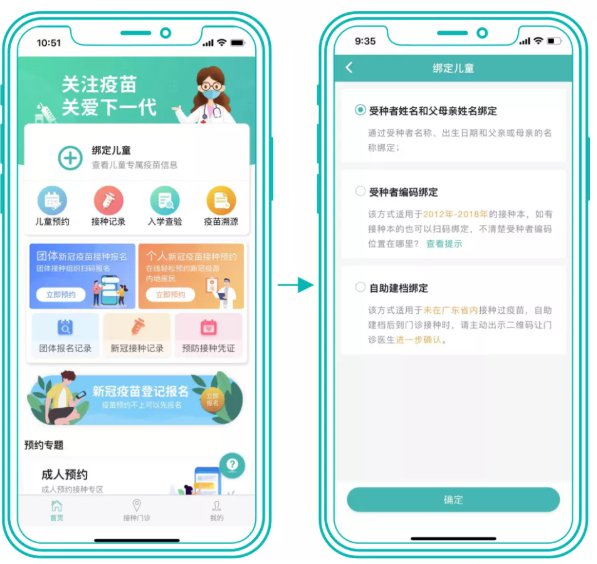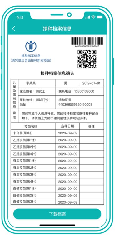 监护人或学生个人通过“粤苗APP”绑定广东省疫苗系统中已有的学生个人档案,自助完善档案中学生身份证号码、父母(监护人)姓名和身份证号码等必需信息,生成接种档案二维码。