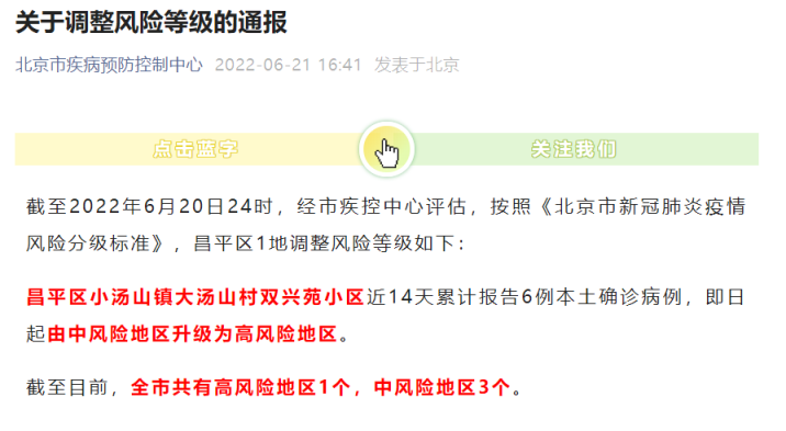 2022年6月21日北京风险等级调整通报