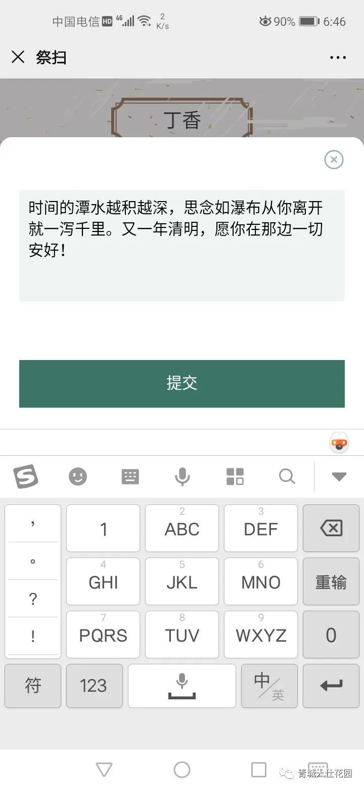 4、完成祭扫,还可转发花束与他人共同祭扫