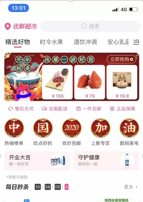 商品情况:可先查看超市便利,有超市入驻,菜品较丰富