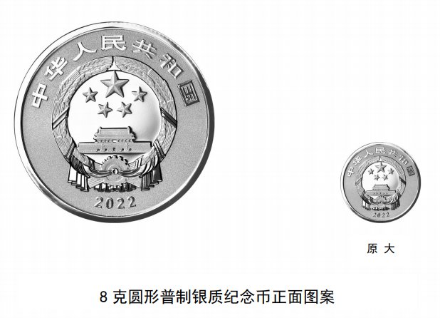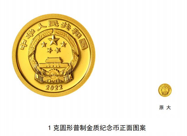 该套金银纪念币正面图案均为中华人民共和国国徽,并刊国名、年号“2022”。
