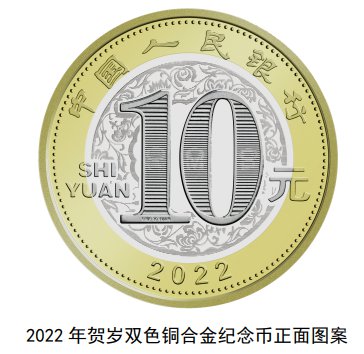 正面图案为“中国人民银行”“10元”字样,汉语拼音字母“SHIYUAN”及年号“2022”,底纹衬以团花图案。