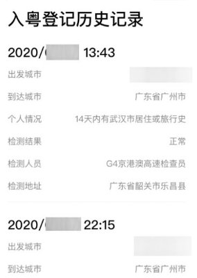 查看已经过检疫站工作人员检测的“入粤登记”历史记录