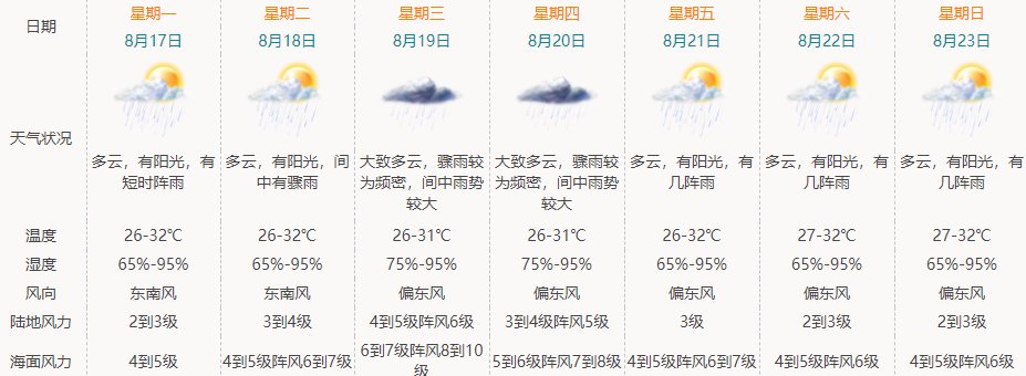 珠海近期天气状况: