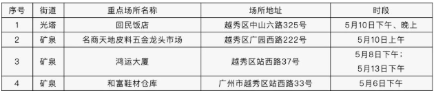 5月12日18时至24时:白云区同德街伊河食府(广州市白云区同德围上步二街16号)。