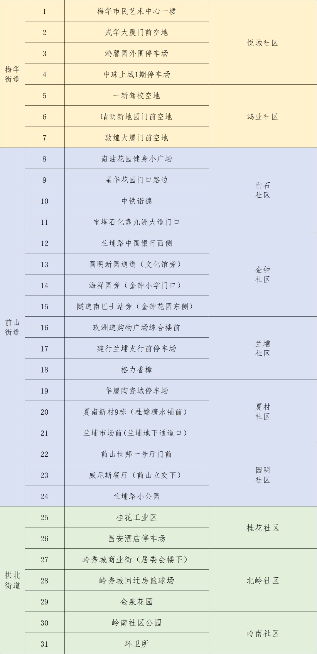 香洲区梅华、前山、拱北街道核酸采样点