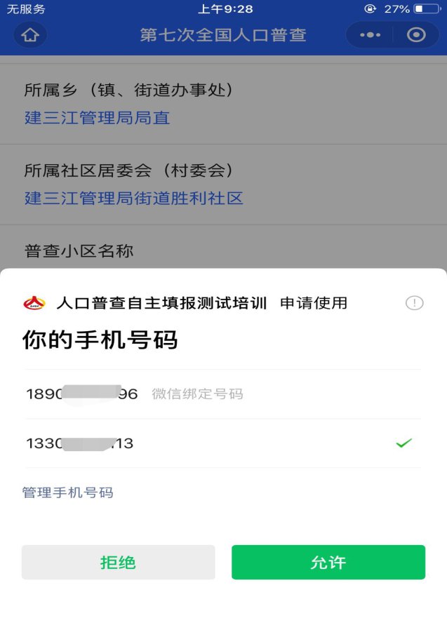 自主填报入口:“人口普查自主填报测试培训”小程序