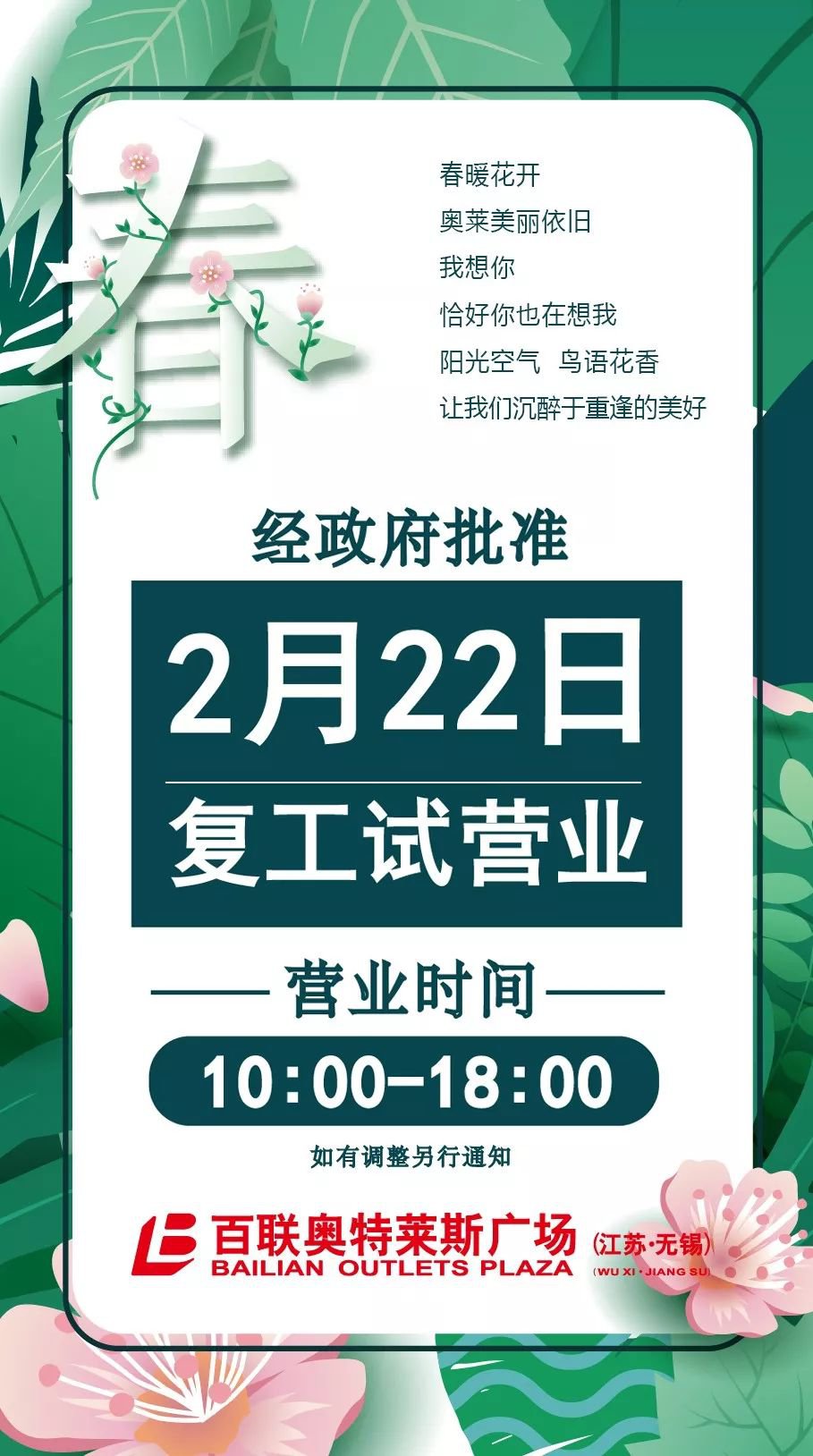 营业时间调整为10:00-18:00