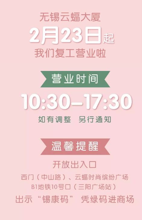 2020无锡商场复工名单