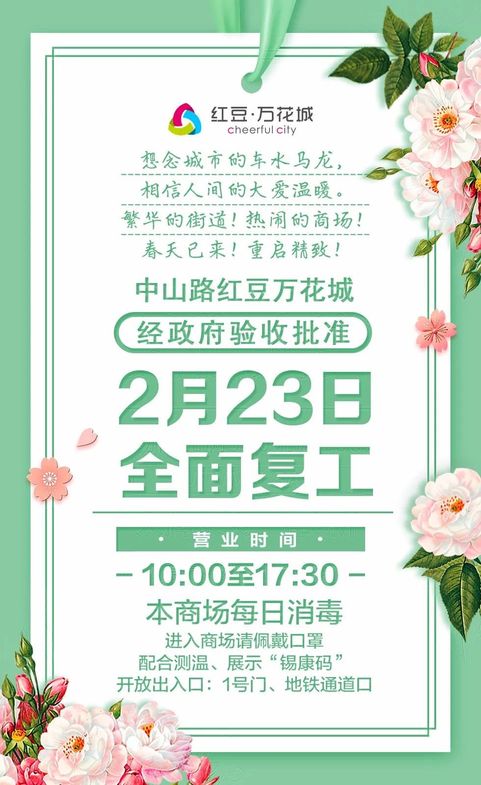 营业时间调整为10:00-20:00