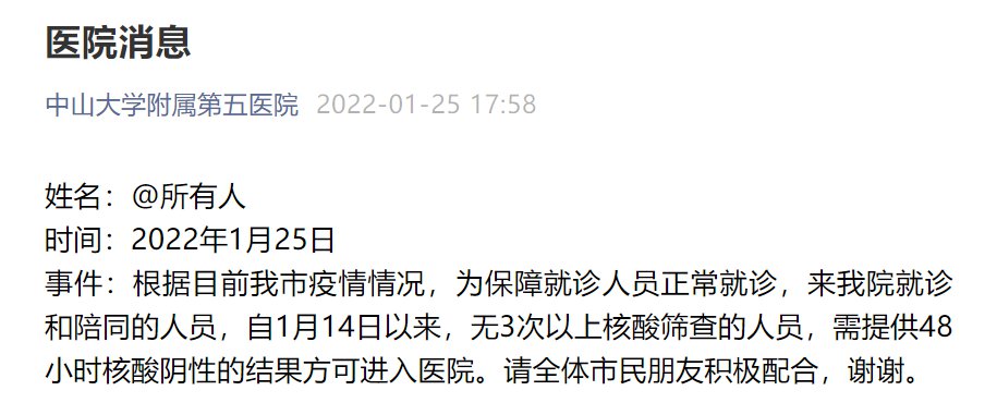 中山大学附属第五医院需要48小时核酸才能进吗?