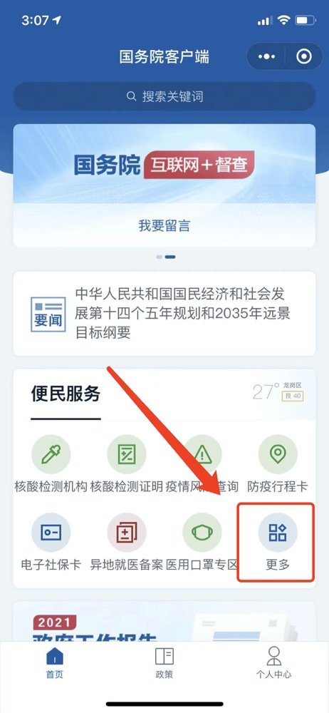 第一步:微信搜索“国务院客户端”小程序并点击进入(如下图所示);