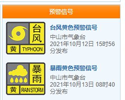 中山最新台风预警信号: