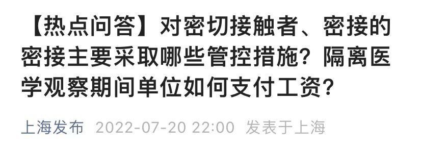 上海密接者最新隔离规定