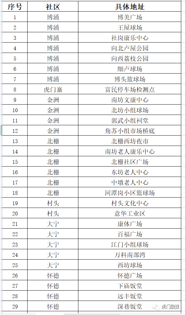 一、检测区域:树田、怀德、居岐、村头、大宁、北栅、赤岗、博涌、白沙、虎门寨、金洲等11个社区。