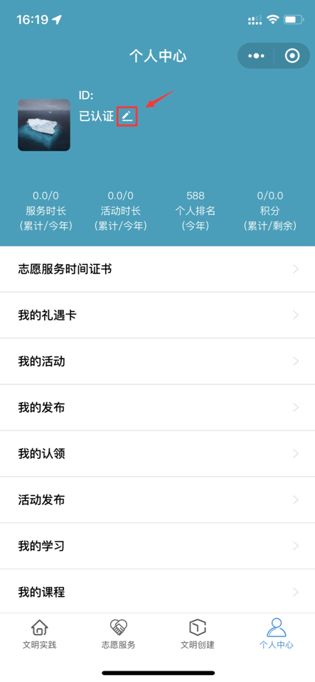 温馨提示:为保护未成年人权益,要求其监护人须同步在小程序上注册,并进行信息捆绑。步骤④:注册成为志愿者时,请选择您所在村居志愿服务队作为归属组织。如信息有误,在【个人中心】栏,点击“已认证”旁的修改选项,点击【志愿服务队】选项并搜索,重新选定归属组织即可▽