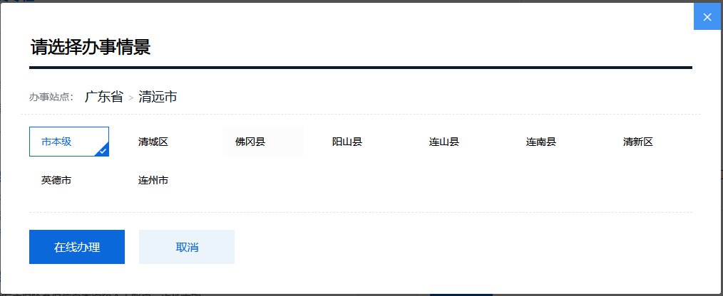 第二步:点击“切换区域和部门”,选择“清远市-清远市医保局”,如下图所示: