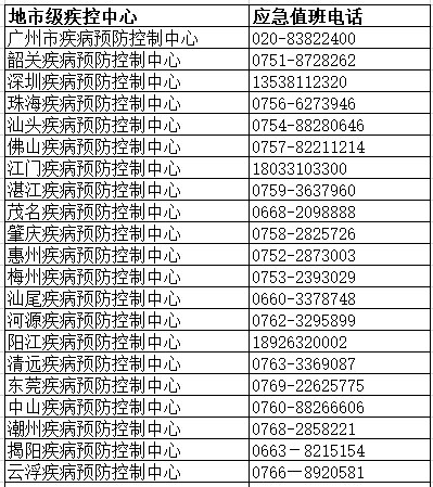 广东省各地级市疾控中心应急值班电话