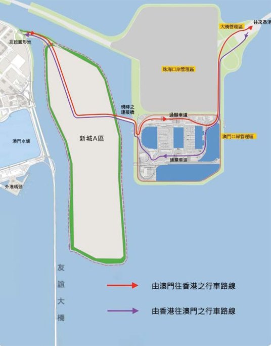 市民或旅客如需往返澳门口岸及珠海公路口岸,可选择以步行方式经港珠澳大桥澳门及珠海边检大楼往返,也可经车道来往双方口岸。